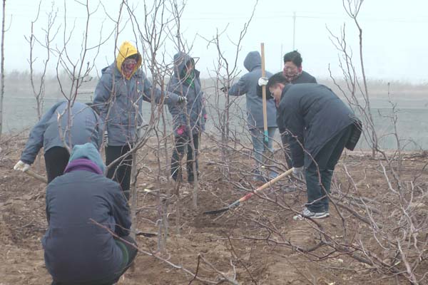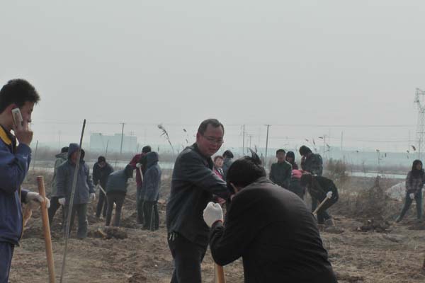 | 春回大地,万物复苏,又是一年植树时。3月13、14、16日公司机关和各单位100余名干部员工齐聚辛安养殖基地,扬锨挖穴、把锹培土、施肥浇水、开展植树活动。3天时间共挖坑栽下3000余棵冬枣树。公司董事长刘德功,总经理周勇,副总经理张文庆、时利宇,工会主席孟兆江等亲临植树现场与大家一起劳动。尤其是14日这天,天气阴沉、寒风中夹杂着由雨水凝结而成的颗粒摔打在人们的身上和脸上。尽管天气恶劣,植树现场,干部员工们依然不畏寒冷,挥锹大干,热火朝天地开展挖坑植树,汗水不时在身上浸出流淌。此次义务植树为促进公司学雷锋活动的深入开展营造了氛围,进一步增强了广大干部员工注重生态、绿化环境、美化生活的观念。