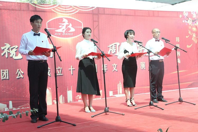 2019年7月24日上午8:58,新邦集团公司成立15周年庆典活动隆重举行。 总经理周勇首先宣布庆典活动正式开始,董事长刘德功发表了重要讲话。刘董事长总结了新邦集团公司15年来公司在企业文化、投资新项目、管理水平、员工收入、专业资质、外部市场、品牌知名度等方面取得的成绩,展望了新邦集团公司的发展愿景,放眼未来,思路创新,目标明确,提振士气,为公司的发展指明了方向。 在本次文艺汇演中,各单位踊跃报名,积极排练,节目形式多样,内容丰富,汇演在房地产公司带来的大合唱中拉开了帷幕。伴随着一阵阵掌声,歌曲、舞蹈、诗朗诵等精心准备的19个精彩节目为观众呈现了丰富的视听盛宴,充分展现了集团公司15年的发展历程和成果,弘扬了新邦文化,展现了新邦人的风采,鼓舞士气,鼓舞人心。 15年创业发展,15年砥砺向前。5500个日日夜夜,新邦人一路高歌猛进,创造了可圈可点的辉煌业绩,留下了坚实沉稳的闪光足迹。今天,国家战略黄河三角洲高效生态经济区和山东半岛蓝色经济区建设正如火如荼实施,为新邦的发展提供了千载难逢的大好机遇。“基业长青,百年新邦”的美好愿景,再次让新邦人群情振奋,让我们紧密团结在以刘董事长为核心的公司领导周围,戮力同心,上下同欲,苦干实干,奋勇拼搏,向百年新邦目标进发! (集团公司办公室 李 静)
